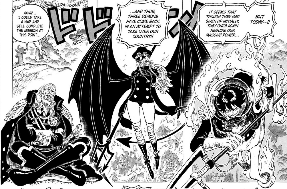 There’s some interesting talk about Haki and how it can be used toward the end. Not much that couldn’t be intuited, but it’s cool to see it put into words by Oda. Interestingly, I think this is the first time we’re seeing characters other than Luffy speak of the kind of disabling Haki burnout that comes at the end of a Gear Four fight, let alone actually suffering it. Will we see more of this going forward? Will powerscalers come to realise that Haki isn’t an infinite resource that can be endlessly tapped by any who awakened it, but also that for storytelling reasons we’ll never see a gamey percentage bar showing how close to running out they are?