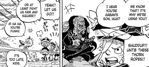 Shanks learning of Ace and thinking of Roger’s legacy in the opening scene definitely raises questions about his being in the East Blue at the start of the story. He must have known it wasn’t Luffy, but he could have been looking for Ace just as easily as he could have been seeking out the Gum Gum Fruit Cipher Pol had found. Gaban thinks it’s more interesting if the children of the greats aren’t guaranteed their own spots at the top, but he’s maybe in the wrong story for that.