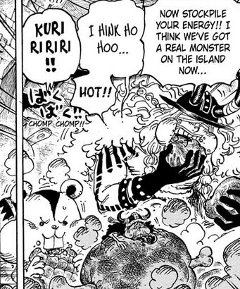 I’m pleasantly surprised to see Lilith getting involved with the conflict in these opening scenes. Kinda thought by this point she was just going to keep her head down in the lab until was over. Bonney hanging out with Franky was adorable as well. And Frankly finally gets to work with his hero! She acknowledges the workmanship of his internal structure and everything, even adds her expertise to him for an upgrade. We were waiting for this! I wonder if Oda held back on this on Egghead because that arc was a required loss and retreat for the crew and didn’t want any new powerups to be undercut by that. Well, better late than never. Hopefully we won’t have to wait another arc for Usopp’s Elbaph moment though.
