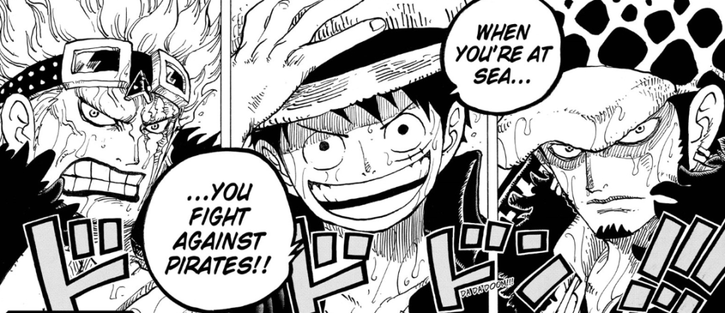 And then we get the volume finale moment. Luffy, Law and Kid fighting side by side after about 12 years. What an incredibly hype thing to end it on. Nothing to say but fuuuuuuck yeeeeah!