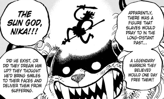And then there’s the big reveal, the Sun God Nika. A messianic figure for slaves that the World Government is apparently trying to keep the stories of from spreading. A man who would bring freedom and laughter to the oppressed peoples of the world. The implications to the developing lore of Joyboy and the Dawn are immediate and obvious. It also gets me thinking about the battle of God Valley, in which Roger allegedly defended the Celestial Dragons’ slaves from Rocks. Even if it was before Laugh Tale, did Roger know about Nika the same way he knows about Joyboy? Then what’s his motive, and what is that of Rocks? Different interpretations of the Nika story, or was Rocks perhaps planning to slaughter the slaves to remove the conditions for Nika’s appearance?