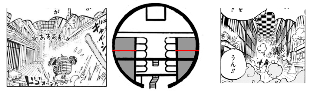 This week we finally get the overhead view of the Onigashima interior people have been asking for literally since the battle started. But what we’re shown here actually raises a few new questions.
