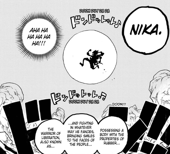 What I really would have wanted to see leading up to this twist, in hindsight, is Nika being better established long before Who’s Who brings him up. A scratching of the name or the silhouette carved into a wall in Impel Down, for example, lingered on just long enough by the camera to make it stick out to hardcore fans. I know we’ve had mentions of sun gods since forever (hell, there’s a thread I started on the topic still on the first page of this board) but not enough follow through between them and the ideas of liberty and broken chains and happiness and rubber now being ascribed to them. Maybe that was meant to click into place on its own when Who’s Who named Nika for us i chapter 1018, but that feels like too little too late for my tastes.
