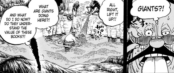 Saul’s survival, while something I would have bet against a week ago, does make sense considering who “killed” him and how. It was theorised for years. I’m not expecting any other revivals from Ohara though. Olvia and Clover were both inside the burning Tree of Knowledge when it collapsed, and with no way to get off the island alone, Saul must have remained frozen until long after the fires died down and the Navy did that final inspection in which they glimpsed the lakebed pile of books.