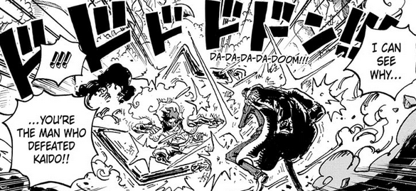 The robot in the Fabrio-phase powering up is surprise though. It didn’t do that when Luffy and Lucci were fighting. Or at least, we weren’t shown it doing that at the time. Whether or not this is an oversight I guess will depend on if it just lights up while Gear Five is active, waiting for a command, or if it actually moves on its own.