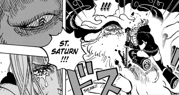 Bonney’s attack feels rash, but I’d be willing to bet she’s saved Vegapunk’s life here. We saw what Saturn can do with a glance. He’s not fucking around here. Which means every moment someone is keeping his attention elsewhere is a better chance of Vegapunk’s head not being exploded. She’s definitely going to need a rescue sooner rather than later next chapter though. Good luck, Sanji!
