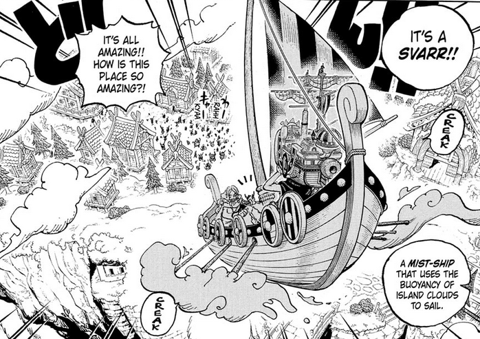 We spare a moment for the beautiful whimsy of the Svarr (which makes me think of the jaw-dropping ascent to the Stormwind Arc in Zelda Tears of the Kingdom) and the interesting note that Elbaph has the perfect climate for a lot of things that Egghead needed island-wide conditioning to support. Did Vegpaunk base parts of the Egghead setup on his time in Elbaph, and if most of what he made was recreations of ancient technology, does that mean Elbaph was connected to that tech in the past too?
