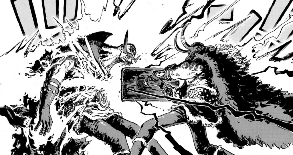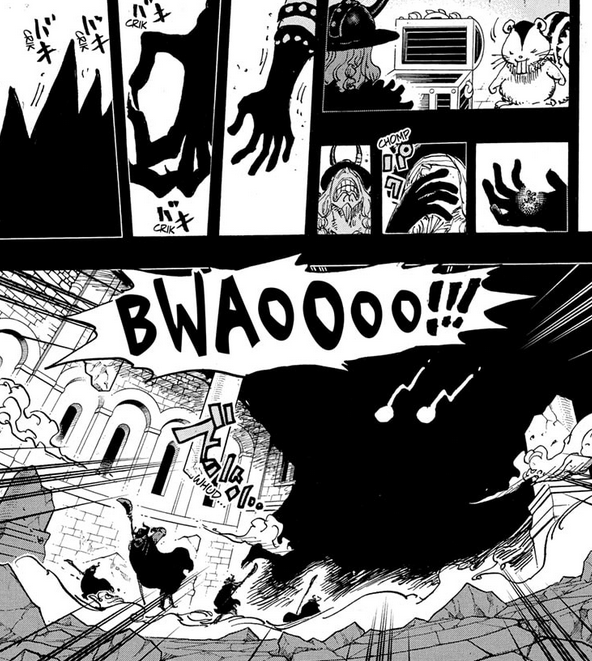 There’s a lot we don’t know about Devil Fruit weapons and I’ve been curious for years. Oda implied in – I think – a post-Water Seven SBS that when Vegapunk was introduced, he’d explain how they were made. Egghead came and went with no such talk. Shamrock’s Cerberus sword raised my hopes again, but he’s ducked out of the arc early. But hey, here’s a living weapon attached to a really prominent character. This time for sure!