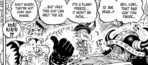 So Ragnir’s ice can only be thawed by Ragnir itself. Cuuuuuuurious. Wonder what we’re going to find out there frozen by the old Warrior God. Galeila maybe? It never sounded like Ragnir was factoring into Rocks’ plans for Elbaph, but maybe he didn’t have enough info to be sure if it was the legendary Devil Fruit, the hammer, or some innate ability of the king.