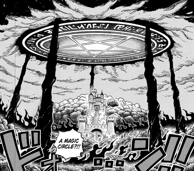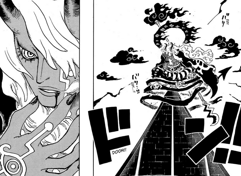 The final sequence is one for the ages. The visual of the pentagram over the castle is perfectly done. Egghead did more than enough setup to make those columns of black smoke an icon of fear. When multiple of them shot up, I thought for a moment the Elders might have followed along despite Imu’s orders. But then, the drum sounds? (The translation choice for one of them is close enough to Dandadan to have me reading it like the refrain from that anime’s intro.) The trees and buildings coming alive? It’s a demonic mirror of Big Mom’s soul powers, which has me thinking a lot about souls and demonic possession in this arc. Maybe just having Devil Fruits actually is the answer to resisting Domi Reversi like Luffy, Loki and Chopper have done. Waaay back in Ennies Lobby we got that folklore that you can’t eat a second devil fruit because the two devils from the two fruits would fight. We all thought Jabra was being silly, putting too much stock in a myth, but now I’m wondering if that scene is the cornerstone of the series’ demonic lore.