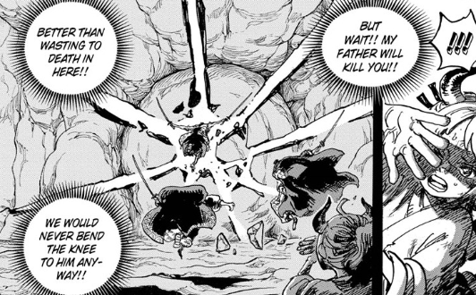 Sanji actually getting Vinsmoke powers is something I didn’t expect at all. I’m not the biggest Sanji fan, so I don’t have the deepest emotional involvement in his arc of being just human with a strong heart being ruined by bloodline superpowers or anything dramatic like that, but I hope Oda’s got a plan for some future character beats following his acceptance or rejection of the new powers. Like I said, I haven’t liked how Sanji’s been written since basically Ennies Lobby, but I’m always open minded about Oda finding something better to do with him.