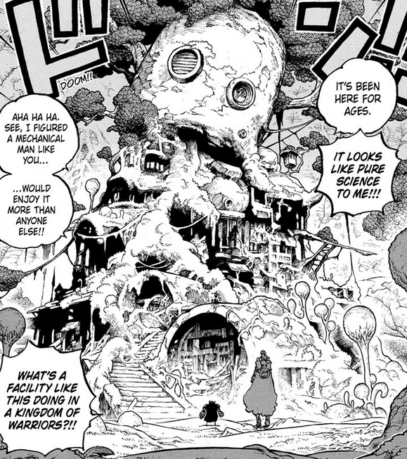 And in all the fun of the escalating battle, Oda has to slip in something real. Subjugation through the destruction of libraries and schools, the malleability of an uneducated populace. A time-honoured tactic of fascists and dictators everywhere. And very, very reasurring after the early chapters of the arc played up the decline of warrior ways and the school and library as the pet projects of a then evil-seeming king. I think we can say with confidence now that this won’t turn into a ‘new generations soft’ kind of narrative. And I love Robin’s intensity when she stands up to resist this. She’s had a great start to this arc and it looks like she’ll keep being one of its central Strawhats. Now we just have to find Usopp’s role…