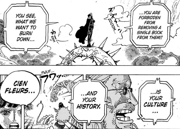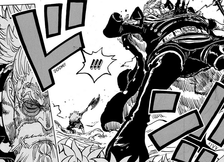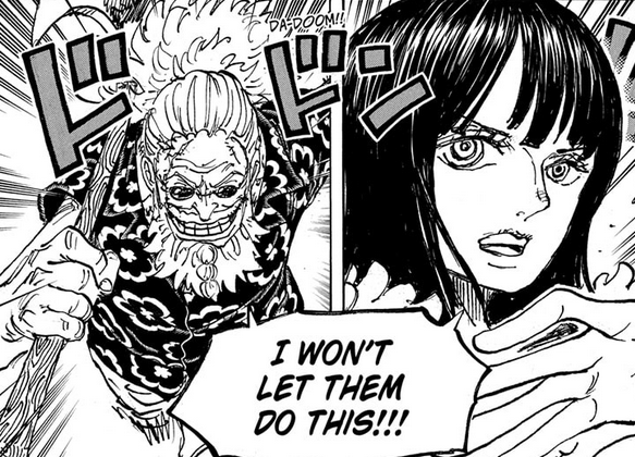 Cool moment for Jinbei here, even if it hasn’t been that long since he saved everyone from a fire the same way on Onigashima. The real surprise is the ticking clock of Elbaph burning being silenced so soon. If not that, then what?