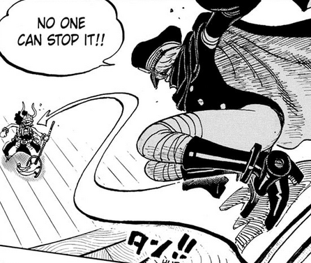 I’m surprised to see the chain capturing continue. I thought it would be a one-off joke last week, but Oda is doubling down. Are we going to see a power that runs on board game rules as a counterpart to Luffy’s comic book rules? I’m not sure how I’d feel about that.
