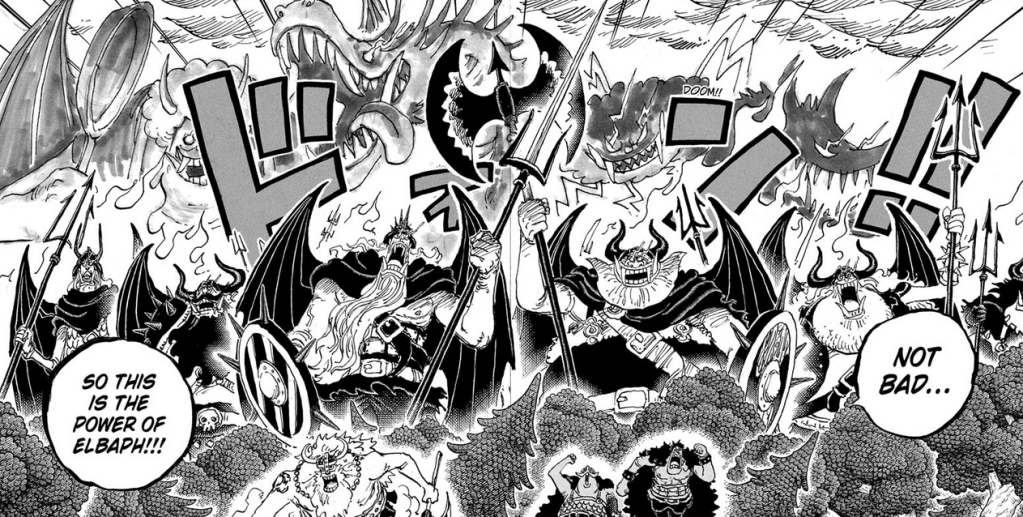 Oda shows no sign of hitting the breaks on Elbaph this week. It’s amazing how different his storytelling feels for this arc and Egghead compared to the bloat of Wano. Whether it’s a second wind from reaching the final saga, a response to feedback or personal feelings about how Wano turned out, or fear that he wouldn’t reach the end before he gets too old to do so, Oda is choosing to go foot to the floor.