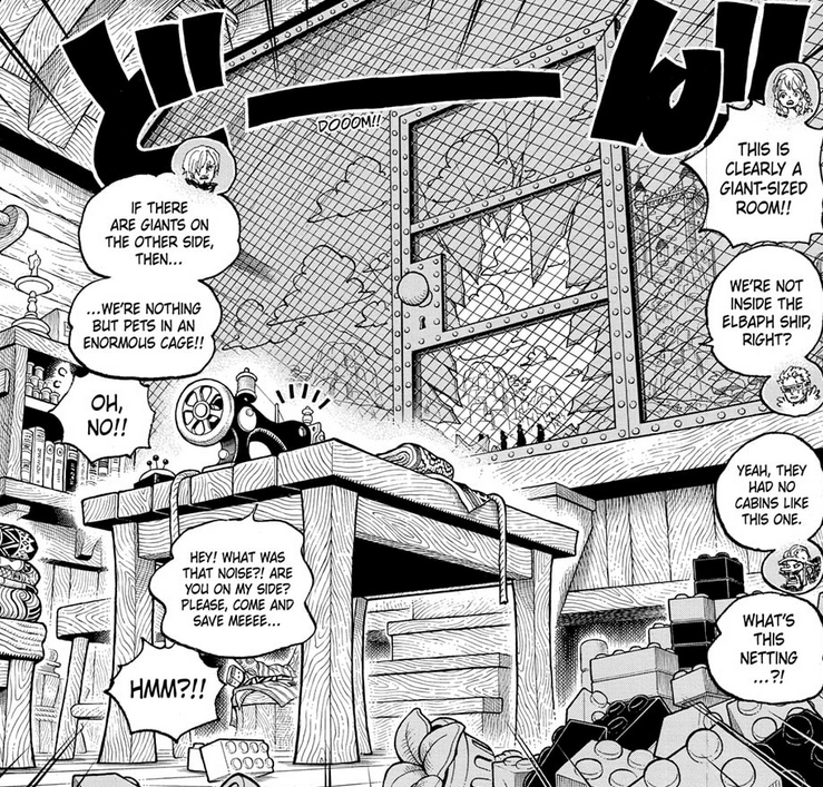 Meanwhile, we’ve got a packed early arc chapter to play with here. It’s fun to see how everyone was a little right and a little wrong about the mysterious kingdom in our weeks of speculation. A lot of people hit the right cues to notice the people weren’t giant size, and of course this place wasn’t actually meant to be a retconned design of the central Elbaf village we’d seen in the past. But with the full picture of it being basically a terrarium and the surrounding room having stone walls and an actual giant present, I’m much more inclined now to say we’re somewhere on the island proper.